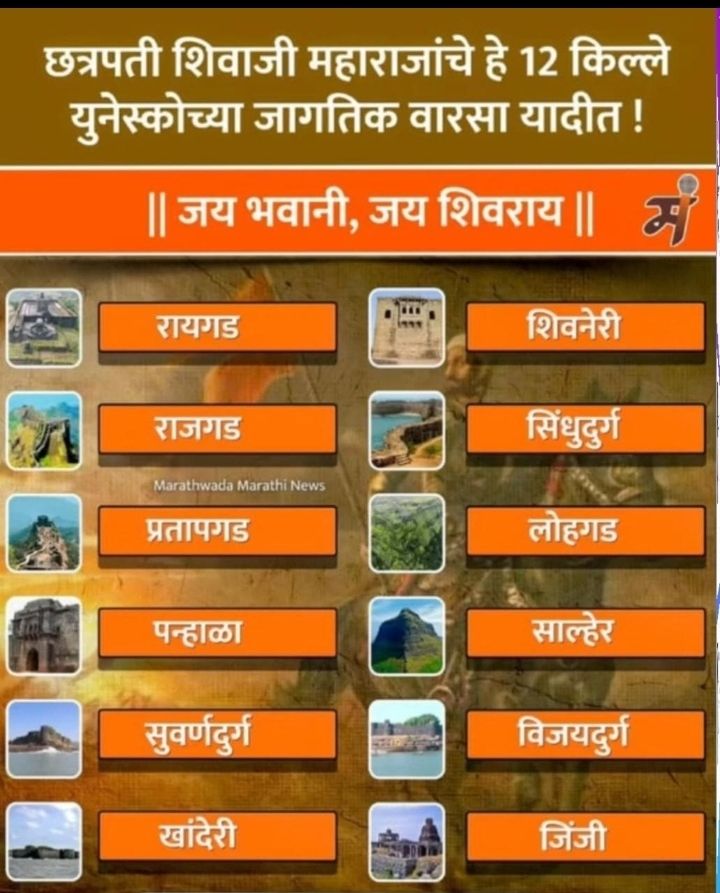 छत्रपती शिवरायांच्या काळातील ऐतिहासिक 12 किल्ल्यांना युनेस्को ने दिला जागतिक वारसाचा दर्जा.