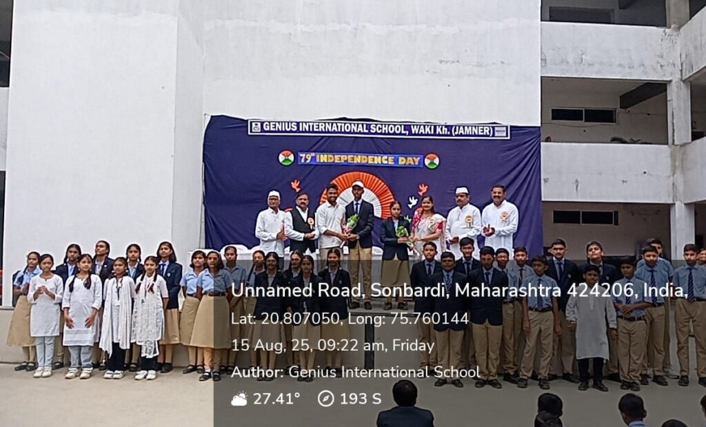 जामनेर(प्रतिनिधी):- शहरातील वाकी खुर्द येथील जिनियस इंटरनॅशनल स्कूल मध्ये १५ ऑगस्ट भारताचा ७९ वा स्वातंत्र्यदिन देशभक्तीमय आणि उत्साहाच्या वातावरणात साजरा करण्यात आला. या कार्यक्रमाचे प्रमुख पाहुणे मयूर डी. पाटील, सहाय्यक कक्ष अधिकारी, मंत्रालय, मुंबई आणि डॉ.सौ. स्नेहलताई एम. पाटील यांच्या शुभ हस्ते ध्वजारोहण करण्यात आले. या कार्यक्रमाला स्वराज्य प्रतिष्ठान संचलित जिनियस इंटरनॅशनल स्कूल चे अध्यक्ष भीमराव पाटील, कोषाध्यक्ष अशोक सोनवणे, संचालक सदस्य – पंढरी पाटील, डॉ.नंदलाल पाटील आणि सौ. शिल्पाताई नितीन पाटील यांच्यासह पालक प्रतिनिधी अमृत पाटील, व्यवस्थापन प्रतिनिधी सौ.जयश्रीताई अशोक पाटील आणि सौ. प्रज्ञाताई उदय पाटील यांची उपस्थिती प्रार्थनीय होती.