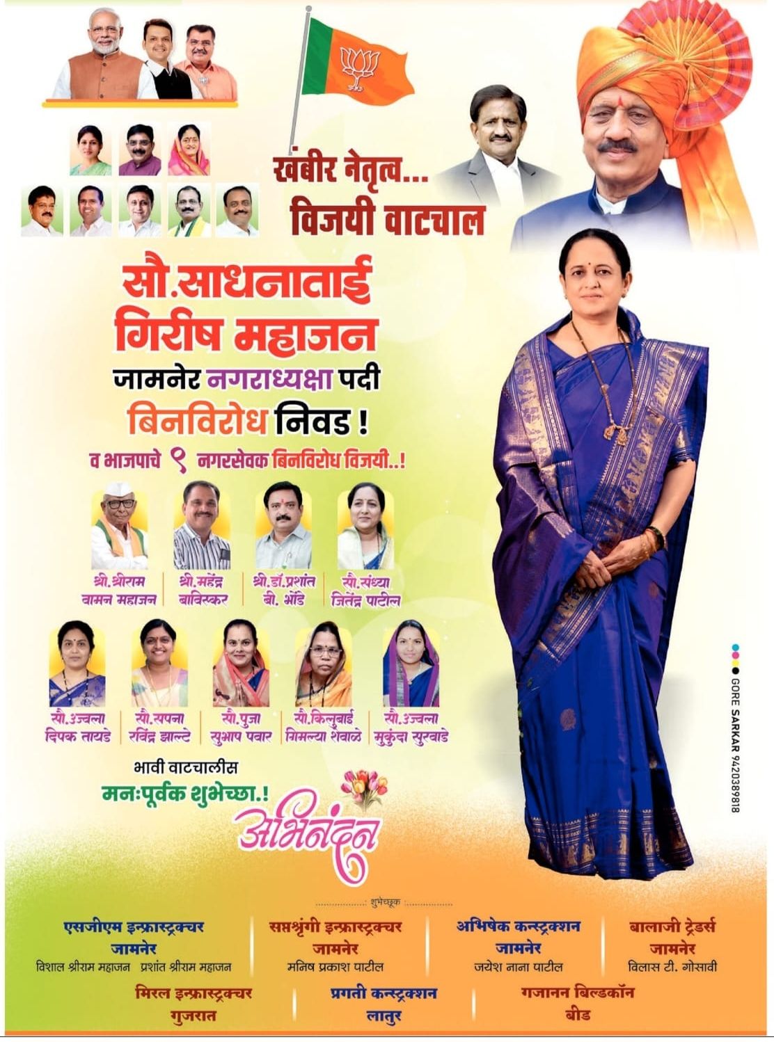 जामनेर – (पंढरीनाथ पाटील):- येथील नगर परिषद निवडणुकीचा प्रचार सुरू झाला असून प्रभाग क्रमांक १० मध्ये भारतीय जनता पक्षाचा एक उमेदवार बिनविरोध निवडून आला असल्याने एका जागेसाठी निवडणूक होऊ घातली असून आज दि.२३ रोजी गिरीजा कॉलनी भागातील संतोषी माता मंदिरात नगराध्यक्षा सौ.साधनाताई महाजन यांच्या हस्ते नारळ वाढवून प्रचाराचा शुभारंभ करण्यात आला. यावेळी भारतीय जनता पक्षाचे जेष्ठ नेते ॲड. शिवाजी नाना सोनार, जामनेर तालुका एज्युकेशन सोसायटीचे सचिव जितेंद्र पाटील, माजी गटनेते तथा प्रभाग क्रमांक ११ मधील बिनविरोध निवडून आलेले नगरसेवक डॉ.प्रशांत भोंडे , ना. महाजन यांचे स्वीय्य सहाय्यक तथा नगरसेवक पती दीपक तायडे, जिल्हाध्यक्ष चंद्रकांत बाविस्कर, निलेश चव्हाण सर, शहर सरचिटणीस प्रल्हाद सोनवणे, आणि सर्वांच्या नजरा ज्यांच्याकडे लागून राहील्या होत्या ते जामनेर एज्युकेशन चे सुरेश धारीवाल , प्रभाग क्रमांक १३ मधून बिनविरोध निवडून आलेले नगरसेवक नाना बावीस्कर,उमेदवार पती सुनील पाटील, याच प्रभागातून बिनविरोध निवडून आलेले नगरसेवक मुकुंदा सुरवाडे यांच्यासह भारतीय जनता पक्षाचे सर्व बिनविरोध निवडून आलेले नगरसेवक , नगरसेविका व निवडणुकीला सामोरे जाणारे सर्व भारतीय जनता पक्षाचे उमेदवार, पदाधिकारी व कार्यकर्ते गिरीजा कॉलनी भागातील मतदार मोठ्या संख्येने उपस्थित होते. यावेळी सौ.साधनाताई महाजन यांच्या हस्ते नारळ वाढवून गिरीजा कॉलनी परिसरात प्रचार रॅली काढून प्रचाराला सुरुवात करण्यात आली.